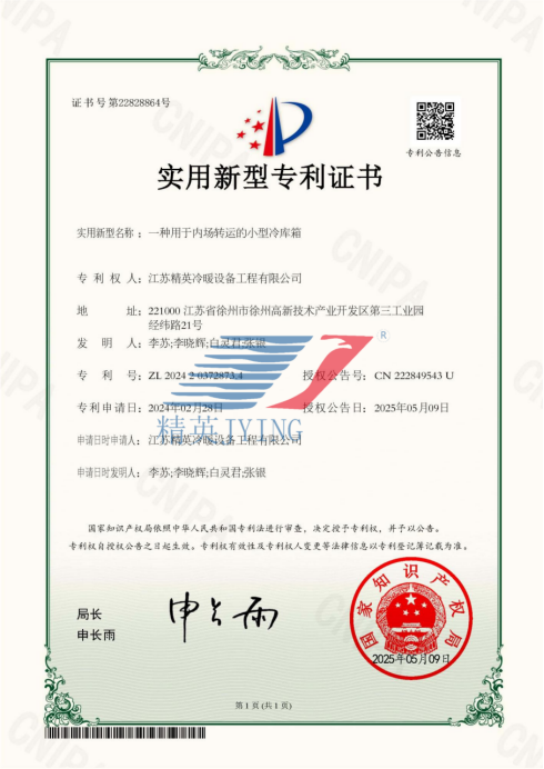 一種用于內(nèi)場轉(zhuǎn)運(yùn)的小型冷庫箱實(shí)用新型專利證書